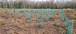 Trotz eines heftigen Regenschauers konnten dann über 1.500 Douglasien sowie Roteichen in den Boden gebracht werden, die dank angebrachtem Verbissschutz auch noch vor dem hungrigen Muffelwild geschützt sind.