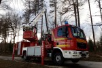 Die zweite Meldung kam dann um 15.53 Uhr aus Montabaur. Gemäß der Alarmierung lagen dieses Mal mehrere Bäume auf der Fahrbahn, was sich auch beim Eintreffen der 15 Kräfte der Feuerwehr Oberdreis bestätigte. Neben den Bäumen, die auf der Fahrbahn lagen, hing ein Baum in anderen Bäumen fest und ragte in die Fahrbahn hinein. Um diese Gefahr zu beseitigen musste die Hubarbeitsbühne der Einheit Puderbach angefordert werden. Mit ihrer Hilfe gelang es auch diese Gefahr zu beseitigen. Im Anschluss wurde die Fahrbahn gereinigt.