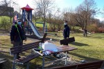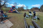 Fast 20 Helfer*innen fanden sich in der Frühe ein, schraubten, frästen, schnitten und pinselten in Zweier-Teams was das Zeug hielt. Gegen 17 Uhr waren die morschen Bretter ausgetauscht und alle Geräte erstrahlten in neuem Glanz.