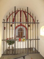 Die Pflege der Raststelle übernahm der Junggesellenverein. Das müsste heute noch in den Vereinsstatuten stehen. Dort wurde aber nicht nur gerastet, sondern auch gebetet. Doch an der Kapelle nagte der Zahn der Zeit, Dach und Türmchen mussten erneuert werden. Hans Kube, aller Freund und Helfer, schuf wieder eine würdige Gedenkstätte, die zu jeder Zeit Wanderer zu einem Gebet einlädt. Es ist zwar ungewohnt, die Gottesmutter hinter einem Gitter zu sehen, aber leider gibt es auch unter uns Andersdenkende.