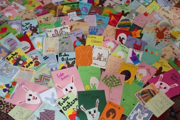 Ganze 148 Oster-Grußkarten haben die Oberbieberer Pfadfinder aller Altersgruppen für die Bewohnerinnen und Bewohner des Oberbieberer Seniorenheimes einzeln von Hand gemalt, gezeichnet und gebastelt.
