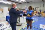 Es folgte der feierliche Teil, auch wenn sich gerade hier zeigte, wie sehr das Publikum als Feierpartner fehlt – bei aller Freude wirkte alles etwas unwirklich: Zunächst wurde Mannschaftsführerin Sarah Kamarah vom Neuwieder Oberbürgermeister Jan Einig für die Wahl zur Spielerin des Tages geehrt.