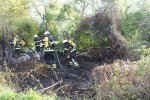 Beim Eintreffen stand eine dicht bewachsende Fläche von etwa 30 Quadratmeter in Flammen. Mit zwei C-Rohren unter Atemschutz wurde zunächst die Ausbreitung der Brandes verhindert und anschließend das Feuer gelöscht. Hierzu mussten Sträucher und Äste auseinandergezogen werden.