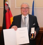 Der Präsident der Struktur- und Genehmigungsdirektion (SGD) Nord, Uwe Hüser, händigte in Vertretung von Ministerpräsidentin Malu Dreyer die Verdienstmedaille des Landes Rheinland-Pfalz für besonderes ehrenamtliches Engagement an Dietrich Rühle aus.