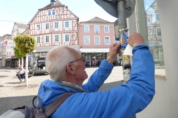 Nach der Überfahrt führt die Muschel alle Wanderer durch die wunderschöne, historische Linzer Altstadt in die Kirche St. Martin. Von hier aus gelangt man nach circa vier Kilometer zurück zum linksrheinischen Jakobsweg nach einer erneuten Rheinquerung und über den Ahrradwanderweg, der vom Rhein nach Sinzig abbiegt. Offizielle Stempelstelle des Pilgerstempels sind die Kirche St. Martin sowie die Tourist-Information Linz (Altes Rathaus, Marktplatz Linz).