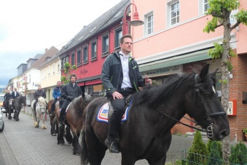 Heddesdorf. Wenn auch diesmal wieder, so wie auch ein Jahr zuvor, die ansonsten phantastische Heddesdorfer Pfingstkirmes leider ausfallen musste und auch der obligatorische Wettritt der heimischen „Burschen“ auf dem Gelände an der Bimsstraße leider ohne jegliche Zuschauer stattfand, so kam doch der obligatorische Langstreckenritt der traditionsbewussten Männer an Pfingstdienstag zur Abtei Rommersdorf und schließlich zum Engerser Marktplatz mit den imposanten Pferden von Thomas Kurz in gewohnter Weise zur Austragung.