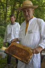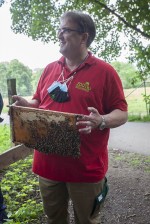 Landrat Achim Hallerbach zeigte sich von der Arbeit der Bienen als auch der Imker beeindruckt. Den beliebten Honig gibt es derzeit leider nicht im Zoo-Shop zu kaufen, weil die Frühjahrsausbeute zu gering war. Angesichts des sommerlichen Flugwetters lohnt sich das Wiederkommen. (htv)