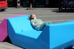 Mehrere moderne Kommunikationsmöbel hat das Stadtbauamt angeschafft, finanziert aus dem Verfügungsfonds des Städtebauförderprogramms „Lebendige Zentren – Aktive Stadt“. Ergotherapeutin Brigitte Herrmann-Schwartzkopff freut sich: „In der Mittagspause hier in der Sonne zu liegen und die fröhlichen Leute um mich herum zu hören, das ist so entspannend. Ich habe es vermisst, dass wir uns so ungezwungen begegnen, gemeinsam draußen sind. Und so ein Nickerchen in der Sonne tut doch immer gut.“ Stadtverwaltung und Servicebetriebe Neuwied (SBN) haben nun veranlasst, dass die Sitz- und Liegeflächen zweimal pro Woche gereinigt werden. So bleiben die Design-Möbel für alle nutzbar.