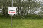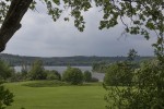 Etwas weiter oben am Hang führt ein asphaltierter Weg zwischen Bahnen des 18-Loch-Golfplatzes hindurch. Ein Schild verbietet das Aufsammeln verschlagener Golfbälle. Die Golfer können einen fantastischen Blick über den Wiesensee genießen, wenn sie vom Grün aufschauen. Im Klubhaus gibt es einen Mittagstisch und leckeren Kaffee. Wer möchte, kann auch im Lindner-Hotel einkehren.