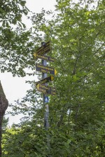 Start und Ziel ist immer vom Parkplatz am Haus des Gastes (Hardtweg 3, 57629 Limbach). Die Touren-Steckbriefe kann man sich im Internet herunterladen oder den entsprechenden Tour-Flyer gegen ein kleines Entgelt am Infopoint vor dem Restaurant Hilger, direkt am Parkplatz erstehen. Allerdings erwies sich die rein analoge Wanderung mit dem Flyer in der Hand als tückisch und aus der geplanten kurzen Strecke (6,2 Kilometer) wurden durch einige Irrwege deutlich mehr. Der erste Irrläufer passierte bereits im Ort, weil man auf dem rechten Grasstreifen der Mühlenaustraße in der Sonne gehend, das auf der linken Seite im Schatten liegende Holzschildchen „Rainpfad“ nicht sieht. Wer auf das Heimatmuseum trifft, muss umkehren. Auf dem Rückweg wurde auch auf der Erde das beschattete Schachfeld sichtbar.
