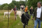 Die Lamas und Alpakas wissen, dass Besucher kommen, wenn das Rondell geöffnet wird. Alles wird sehr ruhig und gelassen ausgeführt: Die Besitzer erzählen Geschichten von der Lebensweise der Tiere, bevor diese aufgehalftert werden. In deren Tempo geht es in die Landschaft. 60 bis 90 Minuten dauert ein Spaziergang, bei dem sich die Alpakas wie Hunde führen lassen, obwohl ein männliches bis zu 150 Kilogramm Gewicht aufweisen kann.