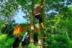 Bei bestem Wetter standen Action, Sport und Spiel, knifflige Teamherausforderungen und eine kreative Bootbauaktion auf dem Programm. Erlebnispädagoge Karsten Schröter sorgte für spannende Unternehmungen. So führten die Kinder ihre Väter mit verbundenen Augen durch einen Parcours im Unterholz, die Väter wiederum sicherten ihre Kinder beim Strickseilklettern in schwindelerregender Höhe. Abgerundet wurde das Wochenende durch einen ebenso lehrreichen wie witzigen Waldspaziergang mit Waldpädagoge Gerhard Willms vom Forstamt Dierdorf.