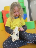 Ein weiteres Highlight war der Besuch der Tierärztin, wo die Kinder die Gelegenheit hatten, sich Knochen von verschiedenen Haustieren wie die eines Hundes und Pferdes anzuschauen. Die Kinderaugen wurden erst recht größer, als eine Erzieherin ihren Hund in die Kita mitbrachte und die Kinder mithilfe eines Stethoskops sein Herz abhören durften.