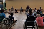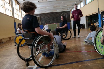In Theorie und Praxis vermittelten das Team des TV-Laubenheim, Lukas Neumann, Olaf Praß und Melanie Müller, die selbst Rollstuhlfahrerin ist, viele Informationen, erzählten von ihren Erfahrungen und Kenntnissen. Auch für Themen wie Vertrauen, selbstbestimmtes Handeln und Barrieren in den Köpfen sensibilisierten sie mit Übungen, Gesprächsrunden und Spielen. Teils schoben sich die Kinder gegenseitig und mit verschlossenen Augen durch die Sporthalle oder sie bekamen es als Rollstuhlfahrende mit verschiedenen Hindernissen wie Bordsteinkanten und Rampen zu tun.