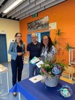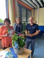 Ralf Waldgenbach würdigte ausführlich ihren Einsatz für die Schulgemeinschaft und überreichte beiden dann die Urkunde des Landes Rheinland-Pfalz. Personalrätin Yvonne Schneider schloss sich den Dankesworten im Namen des Kollegiums an und bemerkte, dass sie und Marion Krießler im selben Jahr ihre Karriere in Puderbach starteten- sie jedoch mit ihrer Einschulung in der Grundschule gegenüber. Nach einer emotionalen Präsentation von Bildern der Pensionärinnen aus den letzten Jahrzehnten überreichte Yvonne Schneider das „Goldene English Dictionary“ an Birgit Musubahu und das „Goldene Berufe Aktuell“ an Marion Krießler für ihr Lebenswerk.