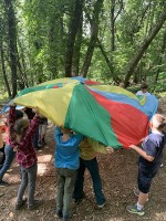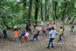Ein Kinotag mit Disneyfilmen und Popcorn, eine Hüpfburg mit Olympiade, viele Bastelarbeiten, wie Speckstein, Armbänder und mehr rundeten das Programm ab. Aber auch das Freispiel kam nicht zu kurz. Die Kinder bauten sich mit viel Fantasie und Ideenreichtum Hütten und Torbögen aus Ästen auf.