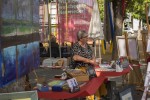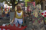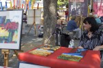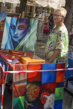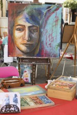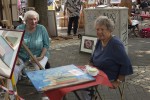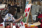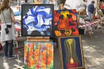Zwischen Spielplatz und Fahnenhügel bildeten die Aussteller am Samstag, 21. August einen bunten Kreis aus Gemälden, Objekten und Fotografien, die die Blicke der Passanten auf sich zogen. Einigen Malerinnen konnte man bei der Arbeit zuschauen und dabei verschiedene Techniken und Stile registrieren.
