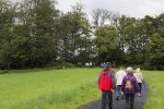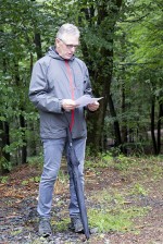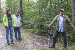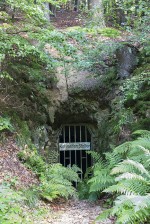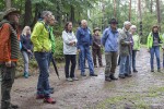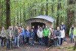 Unter Führung von Klaus Puderbach ging die Gruppe zuerst ein Stück parallel zur Autobahn und bog dann nach links in den Wald ab. Der Wanderweg führt unterhalb der Grube Georg am sogenannten Pulverhäuschen vorbei, einem Sprengstoffdepot zur Zeit des Bergbaus. An diesem neuen Prunkstück mit seiner markanten Bruchsteinfassade wurde ein Stopp eingelegt. Klaus Puderbach erläuterte die Geschichte des Bauwerks.