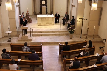 „Uns alle in der Geschäftsführung war es ein persönliches Anliegen, als Unternehmen mit starken christlichen Wurzeln, diesen Gottesdienst zu feiern“, sagte Dr. Jochen Messemer, der Vorsitzende der Geschäftsführung der Marienhaus-Gruppe. „Drei unserer Einrichtungen, das Krankenhaus Maria Hilf, das Seniorenzentrum St. Anna sowie das Hospiz im Ahrtal, haben Schaden genommen und rund 100 Mitarbeitende sind unmittelbar von der Flut betroffen. Sie haben zum Teil ihre gesamte Habe verloren.“ Dennoch sei es gelungen, direkt in einen Krisenmodus umzuschalten und die Hilfe zu leisten, die in der akuten Situation vor Ort nötig war. „Dabei haben wir große Unterstützung durch die Hilfs- und Rettungskräfte sowie das THW erfahren.“ Dafür dankt Dr. Jochen Messemer allen Helferinnen und Helfern.