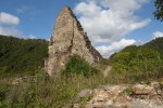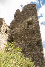 Der Burgführer wies die interessierten Besucher auf Besonderheiten wie einen Kaminzug, erkennbar an dem angesetzten Tuffstein, Reste von Innenputzen und einen kleinen quadratischen Abortturm hin. Aktueller Burgbewohner ist ein Turmfalke.