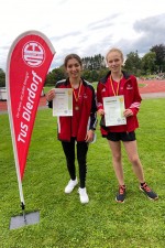 In der Klasse W11 belegten die TuS-Athletinnen Emma Fenske und Syndy Back in allen Disziplinen gute Mittelfeldplätze. Emma wurde dabei Dritte über die doppelte Stadionrunde.