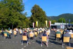 Der Kirmessonntag begann mit dem traditionellen Weckruf durch das Tambour-Corps Roßbach um 6 Uhr in der Früh. Damit waren auch alle Bürgerinnen und Bürger früh genug wach, um dem Festgottesdienst um 10:30 Uhr auf dem Parkplatz vor der Wiedhalle beizu-wohnen.