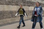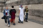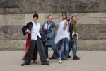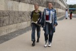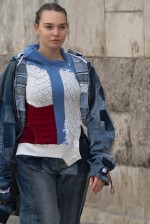 Textile Flächen, auf denen man immer dasselbe Schnittmuster anwenden kann, entstehen, indem zum Beispiel alle noch brauchbaren Jeans in Streifen geschnitten und neu zusammengenäht werden. Der Look kann sich sehen lassen, entsprechend zog die Fashion-Show auf dem Deich am Sonntagnachmittag die Blicke der Spaziergänger auf sich.