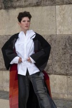Die Designerin beschloss dem Materialwust entgegenzuwirken durch Up-Cycling und Zero Waste Design. Ihre Kollektion, die ausgesprochen tragbar, bequem und schick gestaltet ist, besteht aus Abfallmaterial eines Bielefelder Second-Hand-Ladens. Allein dieser Laden erhält jährlich 80 Tonnen Textilspenden, von denen über die Hälfte als unverkäuflich aussortiert werden. Aus dieser Masse konnte sich Jutta Meisen frei bedienen. Die Künstlerin schnitt Stellen aus Webstoffen und Strickwaren, die noch in Ordnung waren, aus und setzte die Flächen wieder neu zusammen. Das Ergebnis sind sehr modische Kleidungsstücke, die auch die jungen Models als „cool“ und „bequem“ lobten.