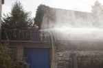 Den Abschluss der Ausbildung bildete ein reelles Einsatzszenario in und an einem leerstehenden Gebäude in Großmaischeid. Hier mussten die Teilnehmer das Gelernte praktisch mit dem Aufbau einer Wasserversorgung und einem Löschangriff unter Beweis stellen.