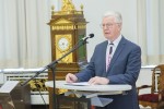 Die Laudatio von Kurator Wilhelm Lindemann zu den ausgestellten Werken trug stellvertretend Tom Munsteiner vor. In seiner Expertise ging Lindemann auf die Entwicklung der mehr als eineinhalb Jahrtausende alten Kunstgattung ein. Während die Intarsientechnik in Florentiner Werkstätten entfaltet wurde, nahm die Kunst des Omessos in den 60er/70er Jahren in Bildern von Munsteiner eine neuzeitliche Entwicklung. Munsteiner wandte sich der skulpturalen Behandlung von Steinen zu, mit zwei Kirchenfenstern, die er gemeinsam mit Sohn Tom gestaltete, kehrte er zu Farbbildern zurück. In der jüngsten ausgestellten Werkgruppe spiegelt sich sein Lebenswerk. Drei- und viereckige Achate werden mit anderen Steinen komponiert und gewähren einen Blick auf die Natur im Schmuckstück. Die Ehrfurcht des Steinschleifers bestimmt Munsteiners Verhältnis zur Natur und zu den Steinen.