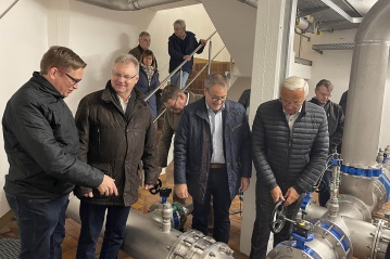 Während der 16-monatigen Bauphase sind sowohl die Wasserkammern instandgesetzt, als auch die Technik erneuert worden. „Die beiden neuen Pumpen arbeiten deutlich energieeffizienter, die Rohre sind jetzt komplett aus Edelstahl“, erklärte Landrat Achim Hallerbach bei der Besichtigung. Außerdem mussten in den Außenanlagen aufwendige Erdarbeiten geleistet und die Dacheindeckung erneuert werden. „Der Behälter war komplett zugewuchert, da musste man grob dran“, berichtete Endres.
