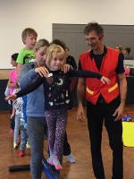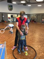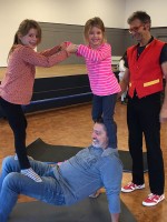 Hier konnten sich Eltern, Großeltern und sonstige Familienangehörige gemeinsam mit ihren Kindern unter Anleitung des professionellen Artisten „Herr Prekär“ in Akrobatik, Balancieren und Jonglieren ausprobieren. Manch einer kam ganz schön ins Schwitzen, aber am Ende war die Freude groß und das Resultat beeindruckend.