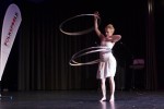 Die grazile Herrin der Ringe, Andrea Engler ließ Hula-Hoop-Reifen in atemberaubender Geschwindigkeit um ihren Körper wirbeln. Die glitzernden Reifen schienen aus eigenem Antrieb hoch und runter zu schweben, Artistik mit Anmut.