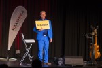 Der schnellste Xylophonist des Universums agierte wirklich außergewöhnlich schnell, nicht nur mit den Händen. Virtuos, rasant und irrwitzig komisch schlug Dirk Scheffel auf sein Instrument und auf den Mikrofonständer ein. Von Klassik bis Rock spielte der Musik-Comedian mit gewaltigem Klöppelabrieb und unvorstellbarer Geschwindigkeit. Für einen Dudelsack benötigt man einen Sack, dazu diente ein Luftballon und einen Dudel, heraus kommt authentische schottische Musik. Und in einem handelsüblichen Xylophon steckt auch der berühmte „French Cancan“ aus Orpheus in der Unterwelt. Wenn er von Dirk Scheffel herausgewirbelt wird.