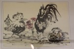 „Hatschi“ ist der Titel lustiger kleiner Figürchen aus Ton von Siv Dibowski. Barbara Friebs Papierarbeit „Bewegung“ kommt durch ihren Schatten auf einer weißen Platte zur Geltung. Ebenso werden die „Tomaten“ aus Acryl von Uschi Lerner durch einen Spot zum Leuchten gebracht. Davor präsentiert ein Glasdom eine Installation mit Vase, Hirsch, Hase und Gläsern von Thomas Naethe. Andreas Pacek hält das Waldsterben fotografisch fest und Katrin Wolf stellt „von der Rolle“ aus, eine Gouache auf grob abgeschnittener Leinwand, bedeckt mit Figuren im Janssen-Stil.