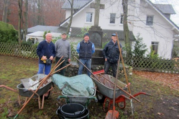 Rheinbreitbach. Die freiwilligen Helfer befreiten das Virnebergskreuz, das Clothekeuz, das Schnitzlerkreuz sowie den Virnebergsstollen von Laub, Unkraut und anderem Unrat. Bewaffnet mit Laubrechen, Schaufeln und Schubkarre machte die Arbeit schnell Fortschritte.