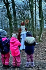 Dierdorf. Gerhard Willms sorgte mit einer Geschichte über das goldene Paket für vorweihnachtliche Stimmung und schon bald entdeckten die Kinder erste Hinweise auf den Nikolaus, so fand sich in den Bäumen ein Stück roter Stoff - vielleicht vom Mantel des Nikolaus? Bald darauf strahlte eine beleuchtete Tanne im dunklen Wald und der ein oder andere hatte bereits ein Glöckchen gehört.