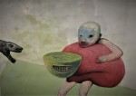 Der dritte Preis geht an Uta Grün aus Boppard für das Bild mit dem Titel „Das neue Schoßtier 2021“. Die Ausdruckskraft der Figur hat die Jury überzeugt, obwohl dem Betrachter es gruselt, denn von einem „Schoßtier“ kann keine Rede sein. Es geht sogar eine gewisse Bedrohung vom Motiv aus. Die Künstlerin ist für ihre verschlüsselten und nicht bequemen Bildaussagen bekannt und seit Jahren ein Stammgast in der Jahresausstellung.