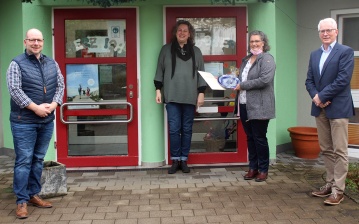 Bürgermeister Volker Mendel gratulierte der Mitarbeiterin mit einer Dankurkunde und überreichte den Wappenteller der Verbandsgemeinde Puderbach. Der Gratulation schlossen sich der Personalratsvorsitzende Heiko Weller und die Leiterin der Kita Raubach Helga Kober an.