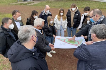 Auch das Schülersprecherteam des WHG ließ sich von Rüdiger David den Planungsstand erklären und schaut erwartungsfroh in die Zukunft: „Wir hoffen, dass auch unsere Stufe die Anlage noch nutzen kann“, sagt Moritz Huxoll, der wie seine SV-Kolleginnen und Kollegen Carlotta Burger, Fabian Fogel, Sophie Hartstang und Johanna Welle 2024 Abitur machen wird.