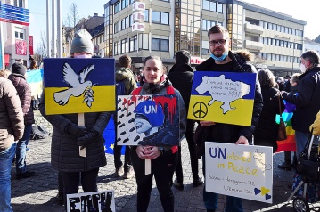 Die Redner verurteilten den russischen Präsidenten Wladimir Putin, der in der Nacht zum 24. Februar den Militäreinsatz in der Ukraine genehmigt und befohlen hat. Damit habe er den Krieg zurück nach Europa gebracht. Putin hat mit den elementarsten Regeln der internationalen Ordnung gebrochen, hieß es übereinstimmend in den Reden. Die Gedanken waren bei den Menschen in der Ukraine und ihnen galt die volle Solidarität der Teilnehmer.