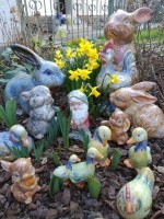 Rheinbrohl. Nun werden wieder schöne Figuren für Haus und Garten zum Verkauf angeboten. Auch wieder im Sortiment sind bepflanzbare Kugeln und Schnecken sowie mehrere neue große (Oster-)Hasen.