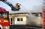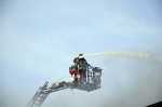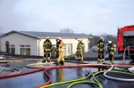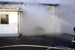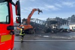 Die Halle ist mittlerweile zum Teil eingestürzt und kann nur von außen gelöscht werden. Im Einsatz sind auch die Drehleitern aus Asbach und Dierdorf. Mit Baggern soll die Halle im Laufe des Vormittags eingerissen und auseinandergezogen werden, damit die Glutnester im Inneren abgelöscht werden können. Der Einsatzleiter Arnold Schücke rechnet damit, dass die Löscharbeiten noch bis zum Mittag andauern werden. Vor Ort ist auch der zuständige Brand- und Katastrophenschutzinspekteur (BKI) Holger Kurz.