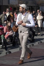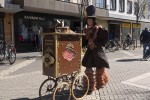 Als Hommage an die vom Tübinger Veranstalter abgesagte ChocolART, unterhielt der schicke, zuckersüße Walk Act „Monsieur Chocolat“ Passanten und Gäste der Modenschau. Mit Hilfe seines geheimnisvollen „CHOCO-LA-MAT“, den sein Großvater auf der Weltausstellung 1851 in London vorstellte und der dort sogar Queen Victoria begeisterte, verteilte er schokoladige Grüße.