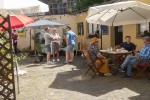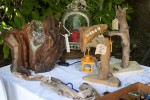 Im Café Auszeit neben der Marktkirche wurde neben Kaffee und Kuchen auch Kunst in Form von Schmuck, Keramik- und Acrylarbeiten angeboten. Im Garten konnte man Schutzengel sehen und einige altvertraute Maler wie Viktor Neufeld, Wolfgang Dillenkofer, Josch Braun und Karin Hentschel antreffen. Außerdem waren kunstvolle Ledertaschen, Speckstein-Figuren, Schmuck, Stolas, Holzschalen, Pullover, Karten und Keramikfiguren im Angebot. Außer Gemälden boten einige Kunstschaffende auch Malkurse an, zum Beispiel Elke Zeitz-Toth, deren Spezialität Tierportraits sind. Porzellankünstlerin Ute Henne freute sich, weil ihre bunten Kugeln bereits Abnehmer und ihre filigran bemalte Phönix-Vase viele Bewunderer gefunden hatten.