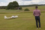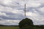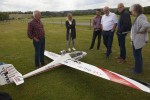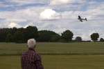 Mario Müller fliegt bereits in seiner 25. Saison, 2016 flog er sogar in den USA. Im vergangenen Jahr hat der junge Mann wieder mit dem Training für Wettbewerbe begonnen und er ist dabei, einen neuen Flieger aufzubauen, mit dem er Ende September an der Deutschen Meisterschaft teilnehmen will. Rund ein Jahr Gemeinschaftsarbeit und eine Menge Geld stecken in einem großen Flugmodell, das ein verkleinerter Nachbau eines manntragenden Turbinenflugzeugs ist. Ein Elektromotor bringt die Turbine ans Laufen. Mit 5,5 Litern Kerosin kann der Flieger etwa fünf Minuten lang fliegen und eine Spitzengeschwindigkeit von 220 Stundenkilometern erreichen. Die Motor- und Windgeräusche verstärken die eindrucksvollen Loopings, Auf- und Abfiguren und rasanten Kurven, die Müller routiniert mit seinem Steuergerät durchführt. Ganz sanft setzt das Flugzeug danach auf der Wiese auf.