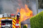 Bei dem Brandobjekt handelte es sich um ein kleineres Wohnhaus in Holzbauweise mit einem angrenzenden Schuppen. Das Feuer hatte bereits vor Eintreffen der Feuerwehrkräfte auf den Schuppen übergegriffen. Das Übergreifen auf andere Gebäude sowie auf den benachbarten Wald konnten die Einsatzkräfte jedoch verhindern. Der Brand wurde mit mehreren Rohren zunächst von außen bekämpft. Durch die Flammeneinwirkung stürzte das Dach ein. Für die eingesetzten Kräfte war dieser Einsatz, durch die hohen Temperaturen, sehr kräftezehrend. Die Wasserversorgung wurde über mehrere Leitungen sichergestellt. Vor Ort war ein Mitarbeiter des Stromversorgers, der die Leitung abschaltete. Das Gebäude, so der Einsatzleiter, konnte nicht gerettet werden: Haus wie Schuppen wurden vollständig zerstört.