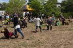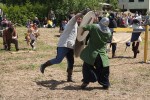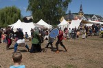 Ein Streitgespräch führte zu Kämpfen zwischen Wikingern und Schotten. Der dicke Ritter Andi versuchte die gegnerische Phalanx einfach umzurennen. Als der Versuch misslang, erging die Aufforderung zum Fechten. Donnernde Schwertschläge auf die Holzschilde dröhnten über den Turnierplatz. Die Kämpfer wurden von ihren Stammesmitgliedern angefeuert und ihre Aktionen kommentiert. Sie gehörten, wie die Banner verrieten, zu den Gruppen „La Horde – die Wilden“, zur „Hammersteiner Ritterschaft“ und zu den „Freien Rittern zu Monschau“. Auch das Söldnerlager „Milites Sentiacum“ bereicherte das Spektakel.