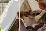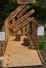 Bad Hönningen. Die Örtlichkeit erwies sich als förderlich mit festem Eingang, Toiletten und Terrasse im Lokal. Der Biergarten hatte sich mit vielen Zelten in einen mittelalterlichen Markt mit Ritterlager verwandelt, man sah zahlreiche Mitwirkende in historischen Gewändern.
