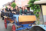 In Engers, in unmittelbarer Nähe des Schlosses, hatten sich auch diesmal wieder etliche interessierte Menschen eingefunden, um das Ankommen der sechs mit bunt geschmückten Zylinderhüten versehenen Reiter mitzuerleben, die zuvor an der Bimsstraße in Heddesdorf den Beifall des begeisterten Publikums und die Siegerehrung durch den jungen Fürsten entgegen genommen haben. Mit dem Sieger dieses traditionellen Wettreitens Andreas Leufgen an der Spitze (er wurde bereits zum dritten Mal Sieger), mit Maximilian Söhn, dem "Boss" David Jakoby sowie mit Charly Karst, Marcel Gutfrucht und dem Neuling Pascal Stahl kamen auch etliche junge Frauen in einer geschmückten Kutsche mit nach Engers, wo dann die Pferde am Schlosszaun festgezurrt und getränkt wurden.